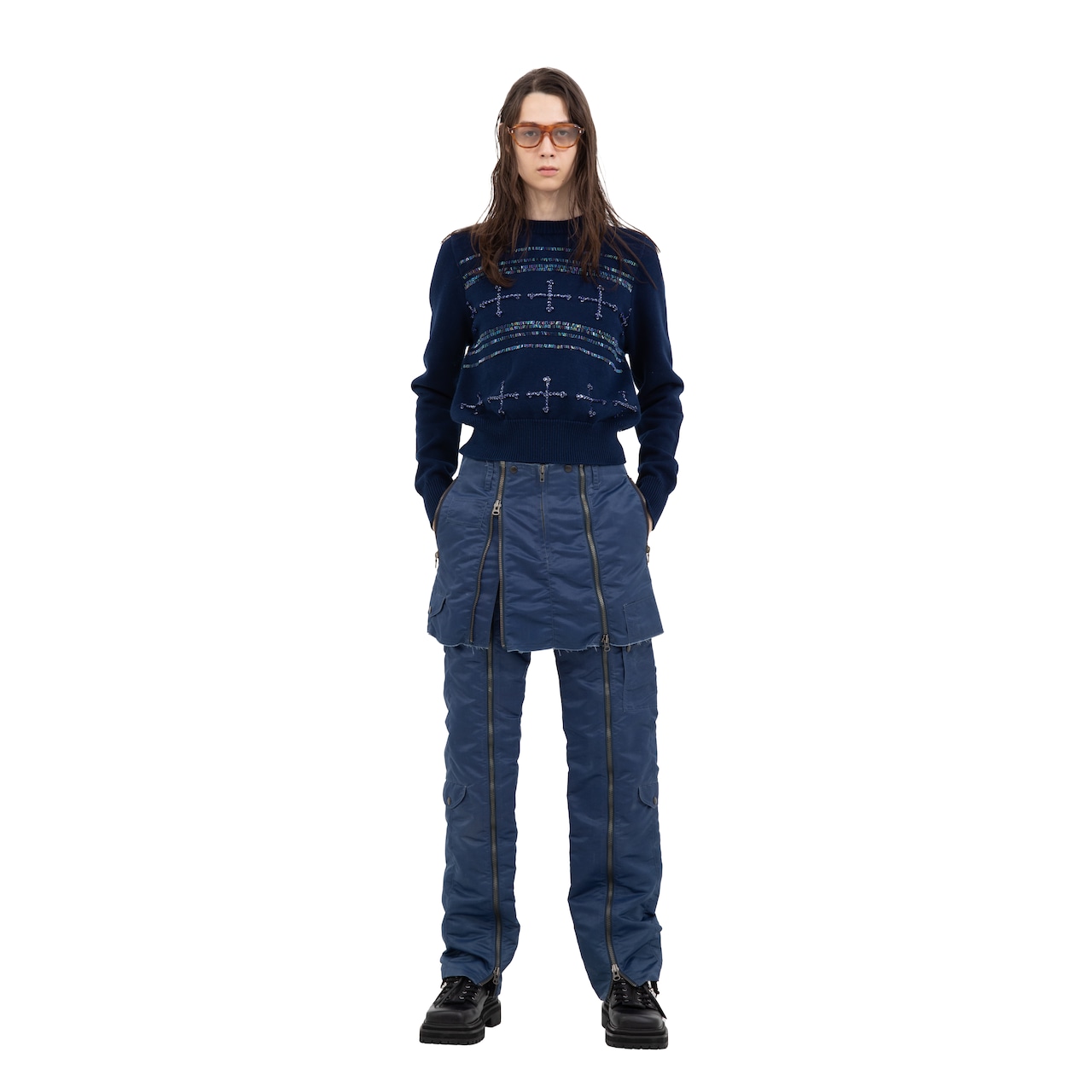 Bijou Cross Tite Knit -Navy-